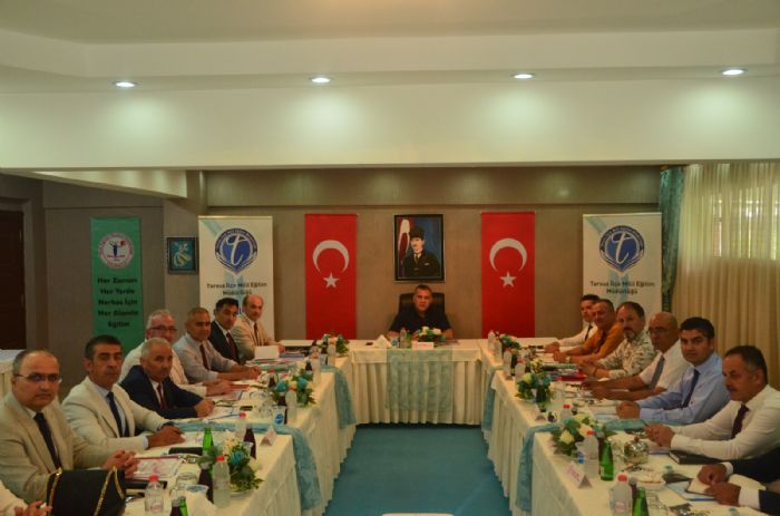 Her ay düzenli olarak gerçekleştirilen "İlçe Milli Eğitim Müdürleri Değerlendirme Toplantısı" İl Milli Eğitim Müdürü Adem Koca başkanlığında Tarsus ilçesinde, 13 ilçe müdürünün katılımıyla gerçekleşti. Toplantıda konuşan Koca, “Önümüzdeki süreçte tüm çalışmalarımızı yeni Milli Eğitim Bakanımız Sayın Yusuf Tekin’in talimatları ve Türkiye Yüzyılı vizyonuyla en nitelikli şekilde yürütmeye, eğitimin kalitesini yükseltmek için her türlü plan ve projeyi paydaşlarımız ve meslektaşlarımızla el ele sürdürmeye devam edeceğiz” dedi.