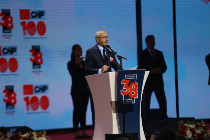 CHP’nin bütün kurultaylardan güçlenerek çıktığını söyleyen Kılıçdaroğlu, “Türkiye'nin içinde bulunduğu tabloyu 7 madde halinde bilginize sunacağım ve örgütümün bu 7 maddeyi Türkiye coğrafyasının her yerinde seslendirmesini istiyorum. Bir, bugün içinde bulunduğumuz koşullarda Anayasa fiilen askıya alınmıştır. Demokratik, laik, sosyal hukuk devleti artık Türkiye'de işlememektedir. İki, ‘saray devleti’ çok da oradan yetmezliğiyle karşı karşıyadır. Güçler ayrılığı ilkesi tümüyle fiilen bitmiştir. Üç, yoksulluğu yaymak ve derinleştirmek ve milyonları yardıma muhtaç hale getirmek saray devletinin politikasına dönüşmüştür. Üzülerek görüyoruz ki, yoksulluk kabullenilen bir kültür haline dönüşmek üzeredir. Yoksulluğun meşrulaştırılması, aynı zamanda eşitsizliklerin de meşrulaştırılmasına yol açmaktadır. Bu sosyal devlet anlayışına aykırıdır ve sıradan yurttaşın herhangi bir yurttaşın hak arama talebini önlemektir. Yoksulluğu kabullenme kültürünün aşama aşama iktidar tarafından yerleştirildiğini bilmemiz lazım. Öyle bir noktaya getirdiler ki Türkiye'yi bireysel yasa dışı zenginleşme adeta bir başarı olarak hayranlıkla izlenir hale getirildi. Dört, Türkiye fiilen yarı açık cezaevine döndürmüş durumdadır. Gazeteciler görevlerini yapamaz haldedirler. Bu kurultayımızda, şu anda tutuklu olan Tolga Şardan’a, Can Atalay’a, Osman Kavala’ya, Selahattin Demirtaş’a, Tayfun Kahraman’a, Çiğdem Batar'a ve Barış Pehlivan'a selam gönderiyoruz. Selam olsun size demokrasi kahramanları. Beş, iktidarda kalmak için her türlü iğne ve sahtekarlığı yapma adeta sarayın meşru politikası haline gelmiştir. Altı, ülkenin dış politikası fiilen iflas etmiştir. Bir kan denizine dönüşen Filistin'de bile Türkiye'nin sözü geçmemektedir. Ortadoğu'da yaşanan bütün sorunların çözüm adresi bir dönem Türkiye'ydi. Herkes Türkiye'ye gelirdi, başvururdu, sorunlarımızı çözün diye. Türkiye bu şansını yanlış dış politikayla kaybetmiştir. Yedi, yanlış dış politikanın bedeli olarak Türkiye bir sığınmacı deposu haline dönüştürülmüştür. Para karşılığı dönüştürülmüştür. Türkiye'nin 85 milyonu iradesi sığınmacı deposu olsun diye Avrupa'ya satılmıştır, Avrupalılara satılmıştır. Bunu gittiğiniz her yerde anlatmanız gerekir. Bu 7 madde tablonun bir yüzüdür. Acıdır ama bir gerçektir” ifadelerini kullandı.