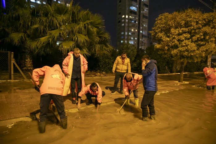 Mersin’de gündüz saatlerinde başlayan ve gece boyu etkisini gösteren sağanak yağışların, vatandaşları olumsuz etkilememesi için Mersin Büyükşehir Belediyesi ve MESKİ ekipleri sabaha kadar sahadaydı. Ekiplerin yoğun çalışmaları sayesinde herhangi bir olumsuzluk yaşanmadı. Mersin Büyükşehir Belediyesi Genel Sekreteri Olcay Tok da sahada çalışmaları takip ederek, herhangi bir olumsuzluk yaşanmaması adına ekipleri yönlendirdi. Aşırı yağışlar nedeniyle bazı caddelerde oluşan su birikintileri ekiplerin anında müdahalesi ile ortadan kaldırıldı.