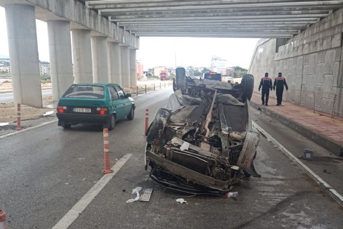Takla atan otomobilin sürücüsü yaralandı