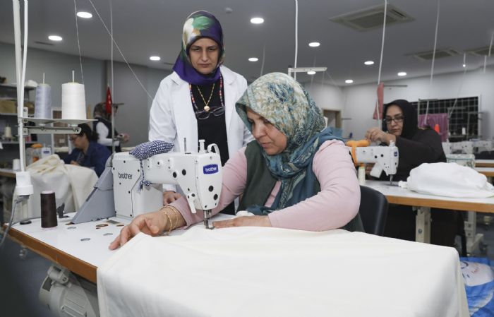 Mersin’de özel birey anneleri dikiş kursunda hem üretiyor hem sosya